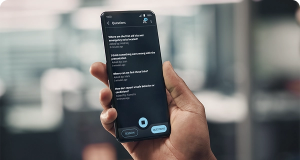 Udržujte posluchače aktivní a zapojené. Účastníci mohou klást otázky ve svém rodném jazyce, které jsou automaticky překládány pro řečníka v reálném čase. Není třeba používat mikrofony ani se potýkat s moderováním.