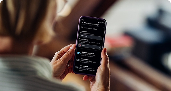 Posluchači mohou sledovat titulky na obrazovce nebo si zapnout zvuk v reálném čase prostřednictvím vlastních sluchátek. Tento dvojí přístup zajišťuje skutečně inkluzivní zážitek přizpůsobený různým potřebám a preferencím, takže se všichni mohou soustředit na sdělení, nikoli na jazykovou bariéru.