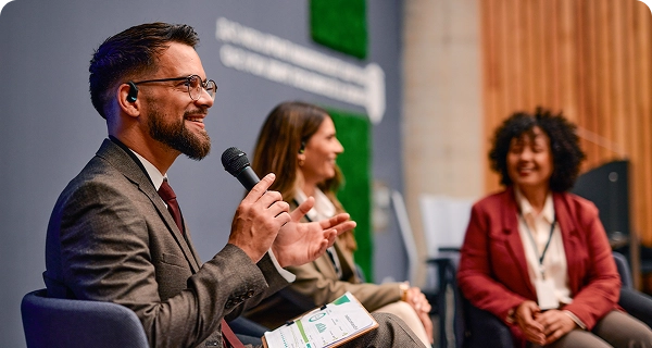 Sdělte své poselství s jistotou a působivě, bez ohledu na to, kdo vás poslouchá. Od obchodních akcí a summitů po workshopy, semináře a prezentace – Vasco Audience okamžitě překládá více jazyků najednou, takže každý posluchač může v reálném čase sledovat, reagovat a účastnit se.